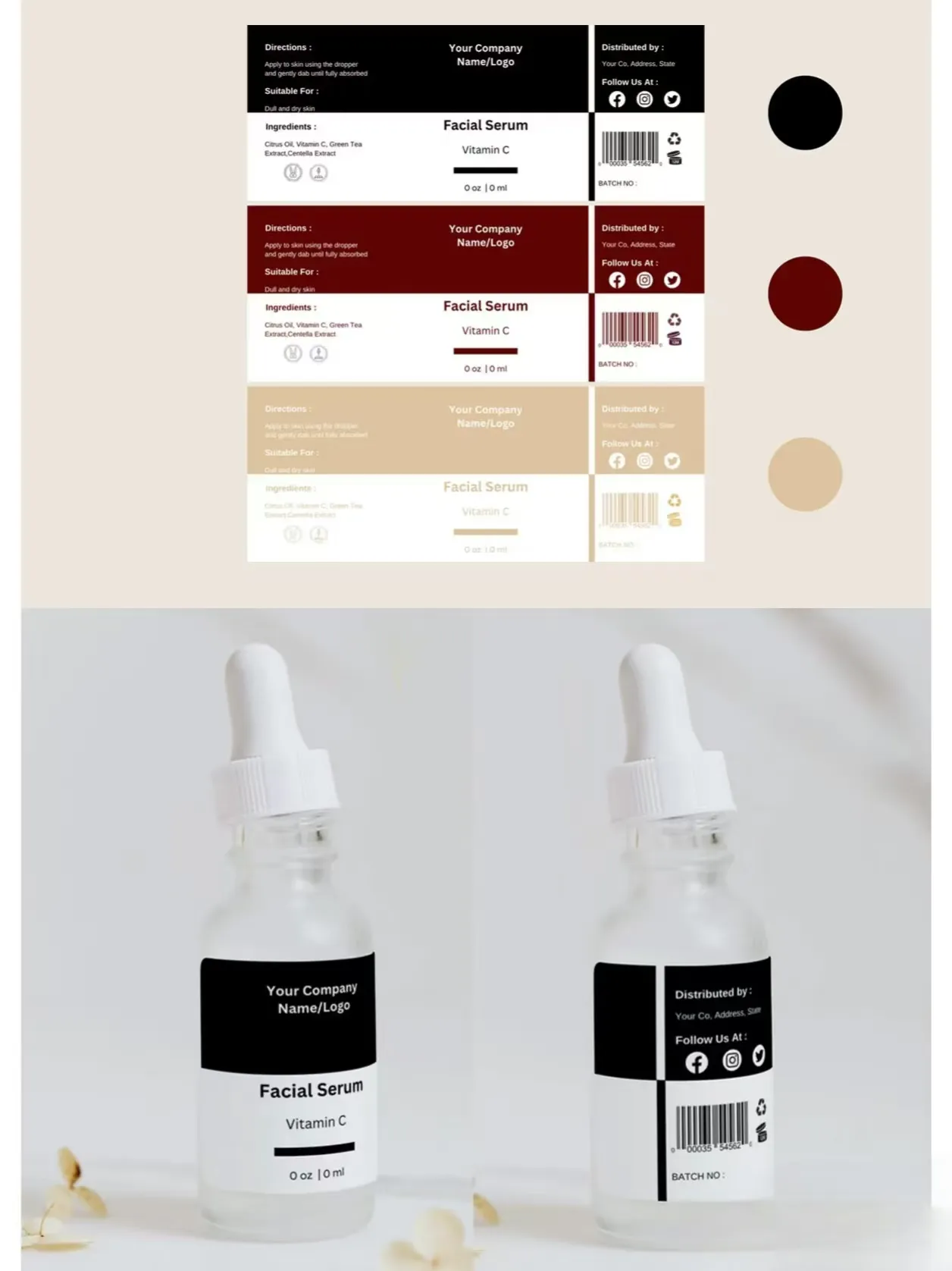 مصنوعة من مجموعة متنوعة من المواد المتميزة، وملصقات الزجاجات سعة 20 مل بما في ذلك الفينيل اللامع المقاوم للماء، والورق غير اللامع، وورق الكرافت الصديق للبيئة، والفيلم الشفاف.جوجو باكملصقات زجاجة 20 ملتتميز بلزوجة قوية، ومقاومة للخدوش والرطوبة، ولمسة نهائية ناعمة تضمن طباعة واضحة للشعارات ومعلومات المنتج وقوائم المكونات وتعليمات الاستخدام. نحن ندعم طباعة CMYK والعمليات الخاصة مثل ختم رقائق الذهب والفضة والطلاء الموضعي بالأشعة فوق البنفسجية والنقش لتلبية احتياجات العلامات التجارية المتنوعة. بفضل الأحجام المخصصة وعدم وجود أخطاء في التركيب، تعد هذه الملصقات الحل الأمثل للتغليف لجعل منتجاتك بحجم 20 مل متميزة في السوق التنافسية.