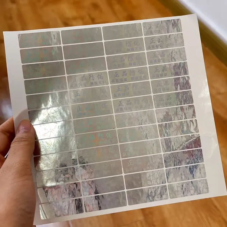 2. ملصق ليزر مضاد للتزوير:صنع باستخدام تقنية صنع ألواح اللوحات المصنوعة من ألوان الليزر وتكنولوجيا تكرار قطع يموت. تقدم الملصق أنماطًا فريدة ليزر ، والتي يمكن تحديدها على أنها حقيقية أو مزيفة من خلال مراقبة العين المجردة أو باستخدام جهاز مكبرة لعرض الميزات المحفورة الداخلية. تختلف أنماط العلامات التجارية المختلفة من ملصقات الليزر المضادة للتزوير بالليزر ، ويمكن تخصيصها.