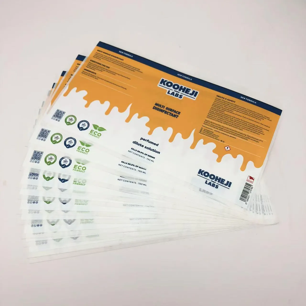 جوجو باكنشارك بعمق في تخصيص ملصقات تغليف الزجاجات المطهرة، ونحن على دراية بمتطلبات المواد ومعايير السلامة للمنتجات المطهرة في المجالات الطبية والمنزلية والتجارية والصناعية، مما يضمن تكيف الملصقات المخصصة تمامًا مع بيئات الاستخدام القاسية.