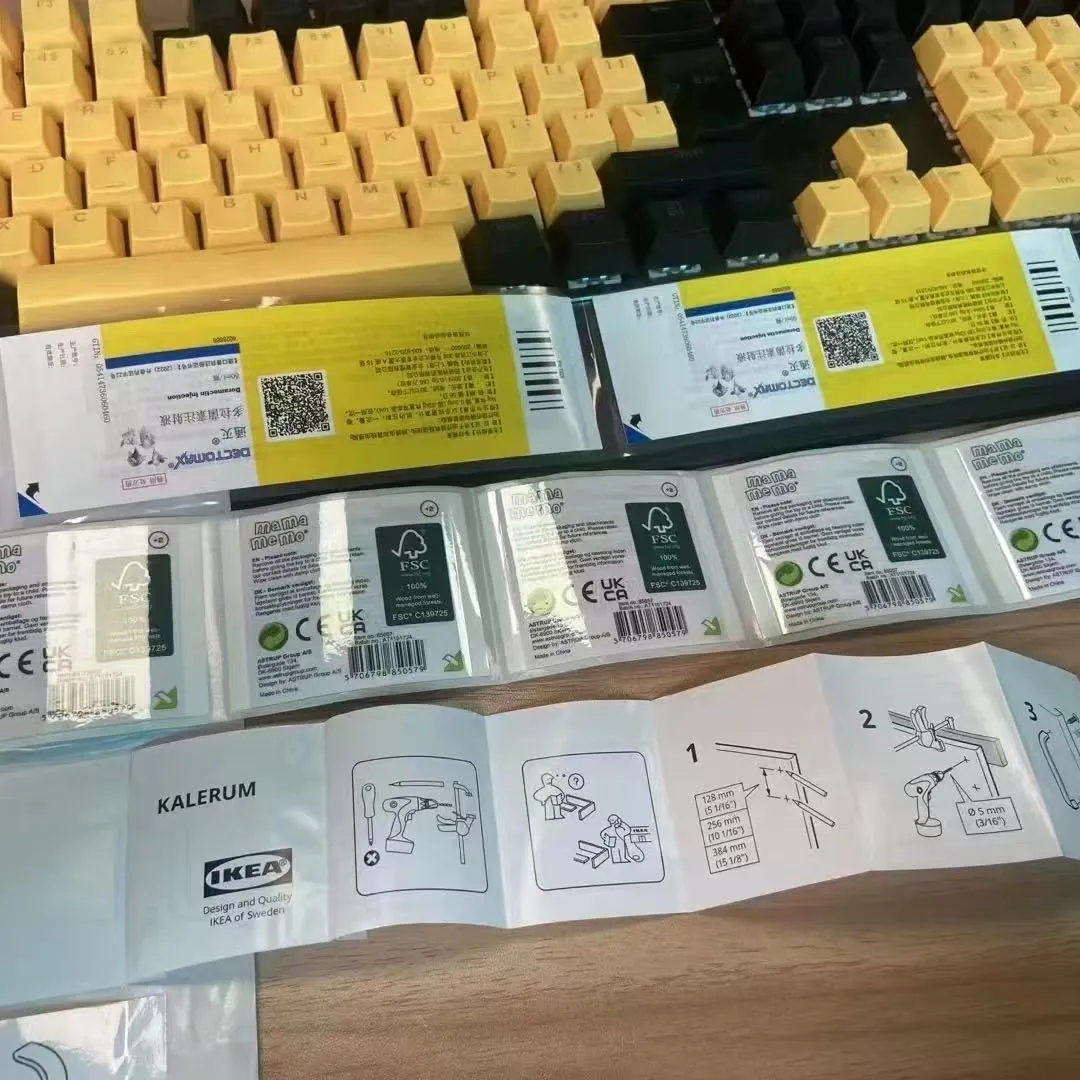 توفر الملصقات المطوية مساحة طباعة تبلغ عدة أضعاف مساحة تغطيتها على أسطح منتجات محدودة للغاية، مثل أجسام الزجاجات وأنابيب الاختبار والأجهزة الإلكترونية الصغيرة. تكون معلومات الملصقات المطوية متعددة الطبقات: الطبقة الخارجية عبارة عن معلومات موجزة، مثل اسم المنتج والشعار، والطبقة الداخلية عبارة عن معلومات مفصلة، مثل قائمة المكونات وتعليمات الاستخدام والرمز الشريطي والترجمة متعددة اللغات وما إلى ذلك.