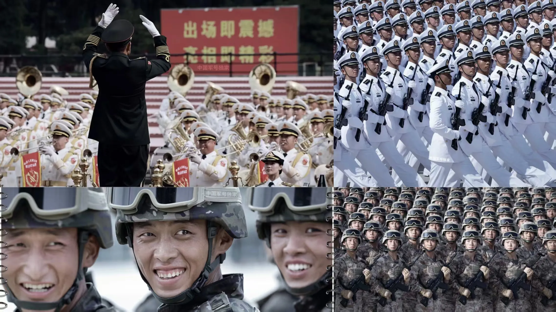 في ميدان Tiananmen ، تم تمرير 45 تشكيلًا ومستويات متتالية ، وفرقة عسكرية مشتركة تتكون من أكثر من ألف ضابط وجنود لعبوا الأصوات القوية للعصر.