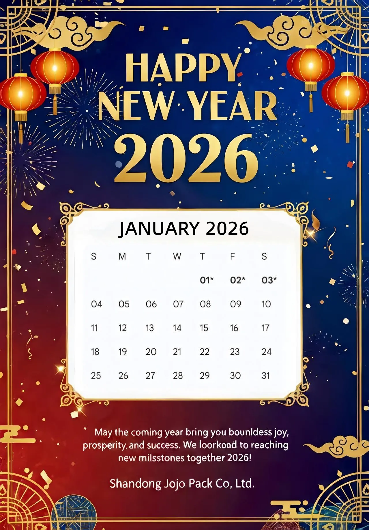 مع اقتراب العام الجديد 2026، نود أن نعرب عن خالص امتناننا لثقة ودعم العملاء المستمرين لشركتنا، الشركة الصينية المتخصصة في تصنيع الملصقات. وفقًا للوائح العطلات الوطنية في الصين، نعلن بموجب هذا عن ترتيبات عطلة رأس السنة الجديدة لدينا على النحو التالي، لمساعدتك في وضع خطط العمل المناسبة مسبقًا.