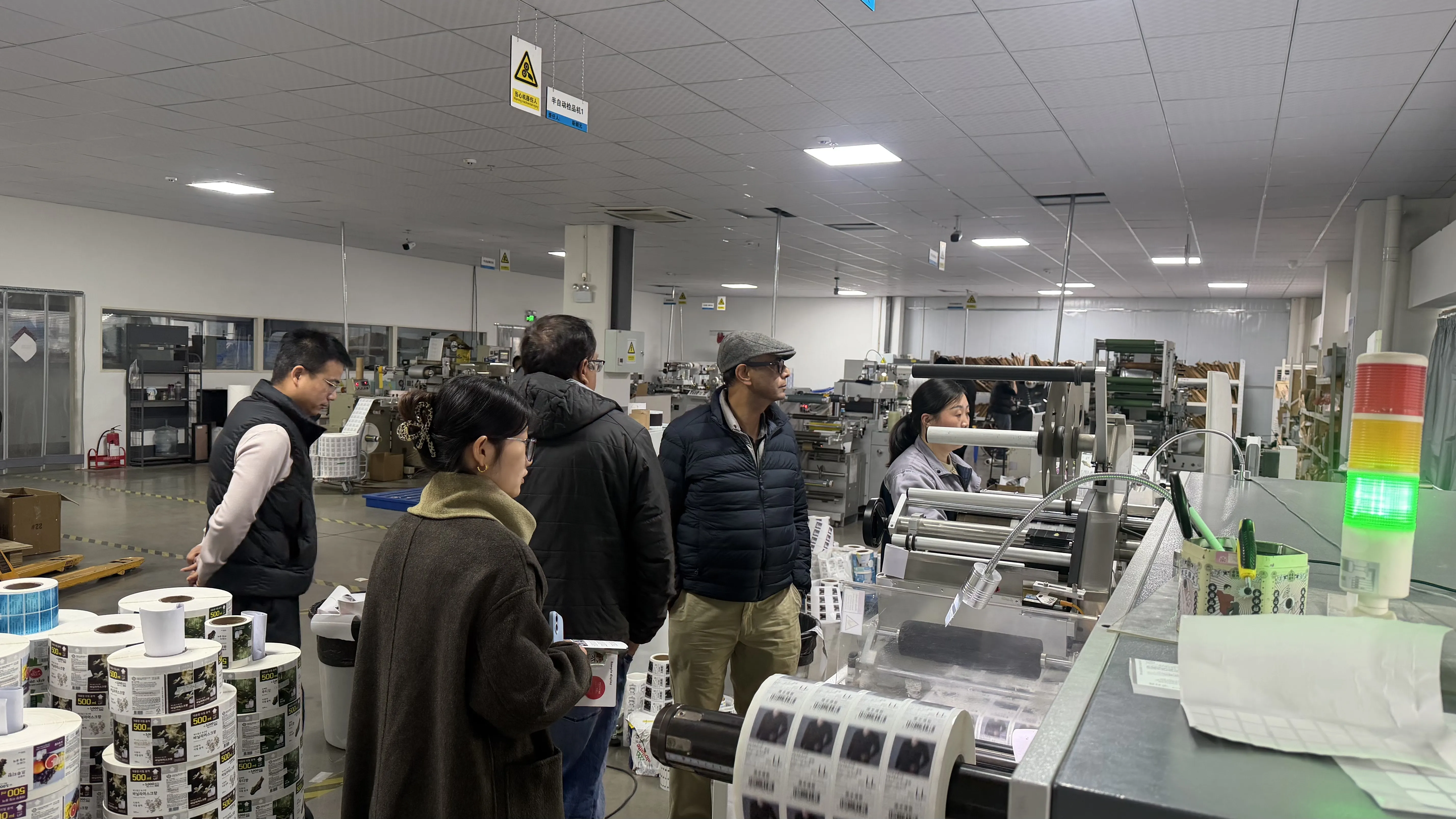 ركز العملاء على معدات الطباعة المتقدمة ونظام إدارة الإنتاج الموحد وعملية مراقبة الجودة الصارمة، وسألوا بالتفصيل عن المشكلات الأساسية مثل مواد المنتج وكفاءة الإنتاج والقدرة على التخصيص. استجاب الموظفون المرافقون بصبر وأظهروا في الموقع عملية الإنتاج وتأثير المنتج النهائي لعينات الملصقات المختلفة.
