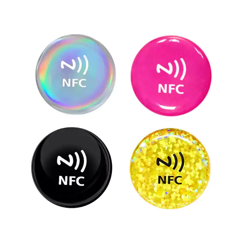 الحجم والشكل: ملصقات NFC صغيرة. وغالبا ما تكون مستديرة وحوالي حجم العملة المعدنية. أحد الجانبين لديه غراء ، بحيث يمكنك بسهولة التمسك بها على أشياء مثل الملصقات أو المعصم أو بطاقات العمل.