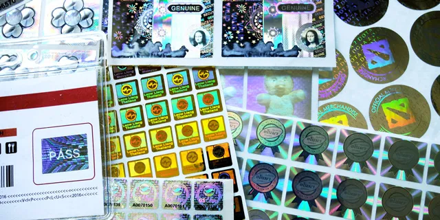 ملصقات الأمان هي معرفات وظيفية متصلة بالسلع أو التعبئة والتغليف أو المستندات ، وتستخدم لتحديد الأصالة ، ومنع التزوير والاحتيال. في الوقت نفسه ، يوفرون أيضًا أساسًا التحقق من التحقق من المستهلكين والوكالات التنظيمية فيما يتعلق بالأصالة. يمكن أيضًا دمج مكافحة التزحلق مع الملصقات الثلاثية الأبعاد لتشكيل نوع من ملصقات مضاد التزوير.