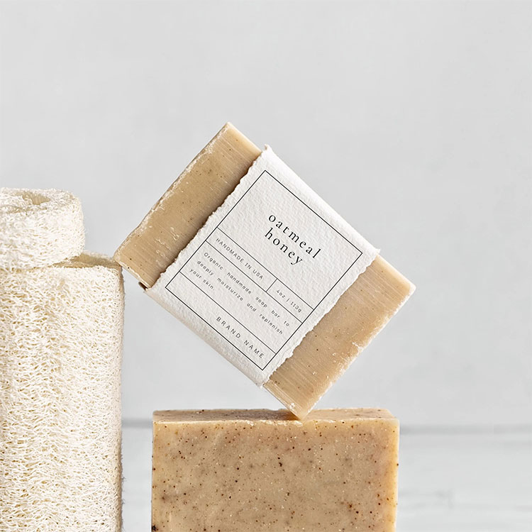 غالبًا ما تتضمن الملصقات اسم العلامة التجارية والشعار واسم المنتج لمساعدة المستهلكين على التعرف على منتجات الصابون المختلفة والتمييز بينها.
