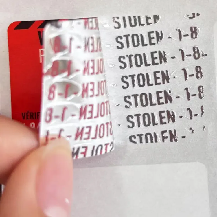 تأثير كبير لمكافحة التزوير:بمجرد إزالة الملصق بشكل غير قانوني ، ستكون كلمة "void" مرئية بشكل واضح ولا يمكن استعادتها ، مما يسمح بحكم مباشر حول ما إذا كان المنتج قد تم العبث به ، مما يجعل من الصعب على المزيفين تقليدها.
