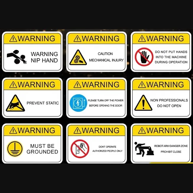 تعمل ملصقات التحذير كحامل حاسم لنقل معلومات السلامة المهمة ولعب دور لا غنى عنه في مختلف المنتجات والعمل وسيناريوهات الحياة. في العديد من المجالات مثل استخدام المنتجات والإنتاج الصناعي والمرافق العامة ، تعد ملصقات التحذير الواضحة وجذابة آلية دفاع مهمة لضمان السلامة.